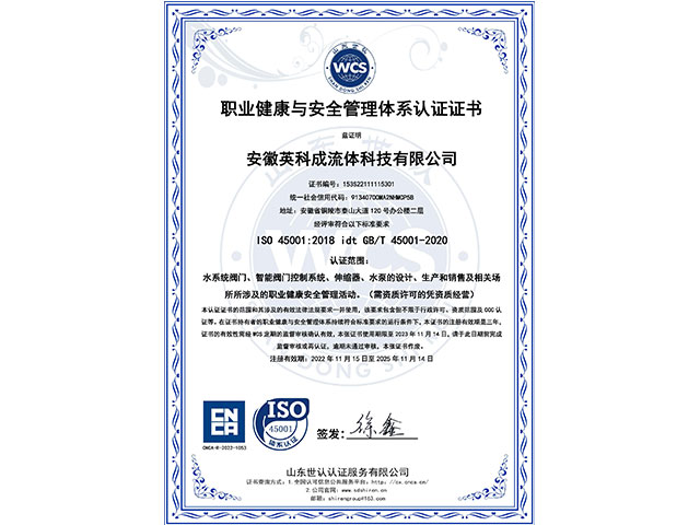 安徽英科成流體科技有限公司位于黃山腳下長江之濱的中國古銅都-安徽省銅陵市。公司注冊資金1.1億,是國內一家專業致力于給排水行業系統解決方案、閥門以及智能閥門技術研發與生產銷售服務為一體的企業。   我們擁有完善的質量控制體系和檢測設備,公司主要的產品有閘閥、蝶閥、偏心半球閥、液控蝶式止回閥、靜音止回閥、橡膠瓣止回閥、活塞式流量調節、錐型閥、節能型泵控閥、倒流防止器、減壓閥、排氣閥、排泥閥、伸縮器、閘門、啟閉機等二十多個系列,可以充分滿足客戶的一站式需求。……